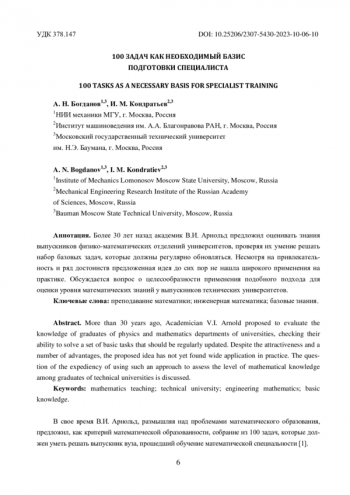 БОГДАНОВ А. Н., КОНДРАТЬЕВ И. М. 100 ЗАДАЧ КАК НЕОБХОДИМЫЙ БАЗИС ПОДГОТОВКИ СПЕЦИАЛИСТА // АКТУАЛЬНЫЕ ПРОБЛЕМЫ ПРЕПОДАВАНИЯ МАТЕМАТИКИ В ТЕХНИЧЕСКОМ ВУЗЕ. 2023. № 10