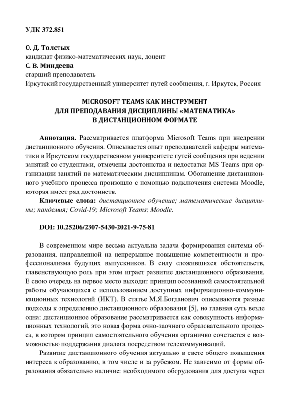 Миронова, Ю. Н. Использование дистанционных технологий при проведении занятий: LMS Moodle, Google класс, Microsoft Teams / Ю. Н. Миронова // Азимут научных исследований: педагогика и психология. 2020. Т. 9. №4 (33). С. 177-182. EDN: YFIHOG