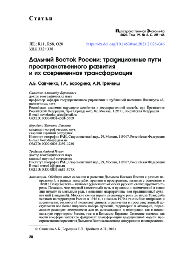 Savchenko A.B., Treivish A.I. Historic-Geographical Peciliarities of Exploring Russia's Nothern and Arctic Territories in the 17th-19th Centuries // Regional Research of Russia. 2017. Vol. 7. Pp. 169-179. DOI: 10.1134/S207997051702006X EDN: YVZOWI
