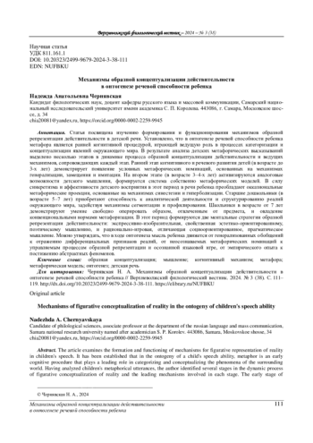 Статья: МЕХАНИЗМЫ ОБРАЗНОЙ КОНЦЕПТУАЛИЗАЦИИ ДЕЙСТВИТЕЛЬНОСТИ В ОНТОГЕНЕЗЕ РЕЧЕВОЙ СПОСОБНОСТИ РЕБЕНКА (2024)