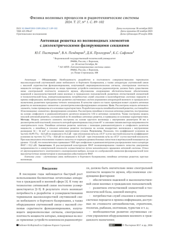 Background. The need to develop and continuously improve mobile and on-board high-speed satellite communication terminals, as well as satellite communication equipment with high secrecy of operation, emitting ultra-wideband signals, the spectral power density of which, measured at the input of receiving devices of radio monitoring complexes, should be significantly lower than the spectral power density of noise, is due to the following circumstances: ensuring reliable and high-quality communication military and civilian users; the development of the domestic element and technological base, import substitution; the need for rescue services in small-sized information transmission and reception systems; the need to develop satellite control systems for military and civilian equipment; the development of precision agriculture programs. An antenna array made of waveguide elements with dielectric phasing sections can serve as one such example.