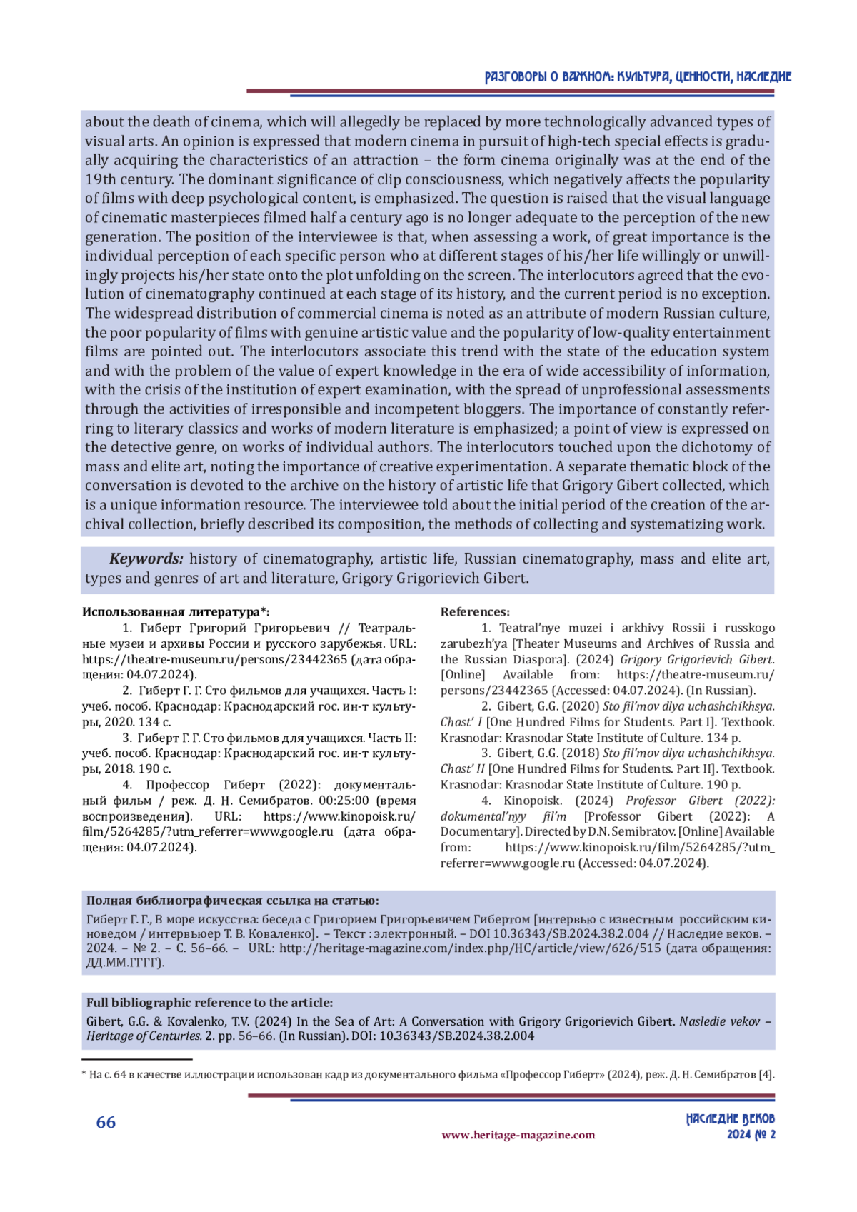 4. Профессор Гиберт (2022): документальный фильм / реж. Д. Н. Семибратов. 00:25:00 (время воспроизведения). URL: https://www.kinopoisk.ru/film/5264285/?utm_referrer=www.google.ru (дата обращения: 04.07.2024).