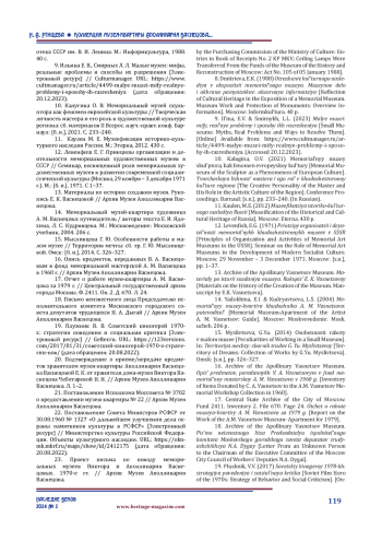 8. Дмитриева Е. К. Отражение культурного наследия в экспозиции мемориального музея. Музейное дело и охрана памятников: обзорная информация / Министерство культуры СССР, Государственная библиMuseion Onотека СССР им. В. И. Ленина. М.: Информкультура, 1988. 40 с.
