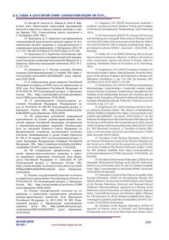 18. О нематериальном этнокультурном достоянии Российской Федерации. Федеральный закон от 20.10.2022 № 402-ФЗ [Электронный ресурс] // Президент России. URL: http://www.kremlin.ru/acts/bank/48445 (дата обращения: 10.06.2024).