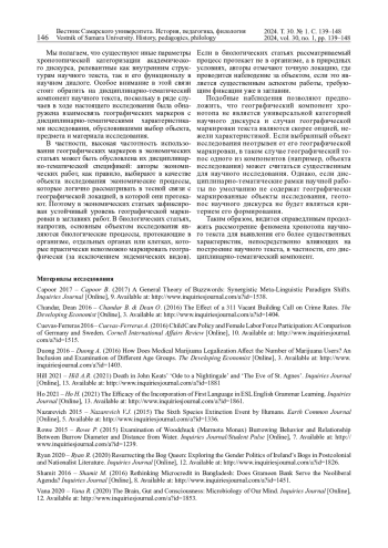 12. Тарнаева, Любшина 2018 - Тарнаева Л.П., Любшина М.В. Прагмалингвистические характеристики англоязычного социологического дискурса // Филологические науки. Вопросы теории и практики. 2018. № 11-1 (89). С. 171-176. https://doi.orq/. DOI: 10.30853/filnauki.2018-11-1.36 EDN: YMRBDF