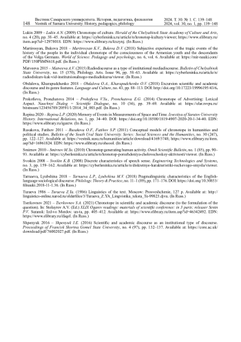 3. Лукин 2009 - Лукин А.Н. Хронотоп культуры // Вестник Челябинской государственной академии культуры и исскуств. 2009. № 4 (20). С. 38-45. URL: https://cyberleninka.ru/article/n/hronotop-kultury/viewer; item.asp?id=12978018. EDN: KXZYNJ