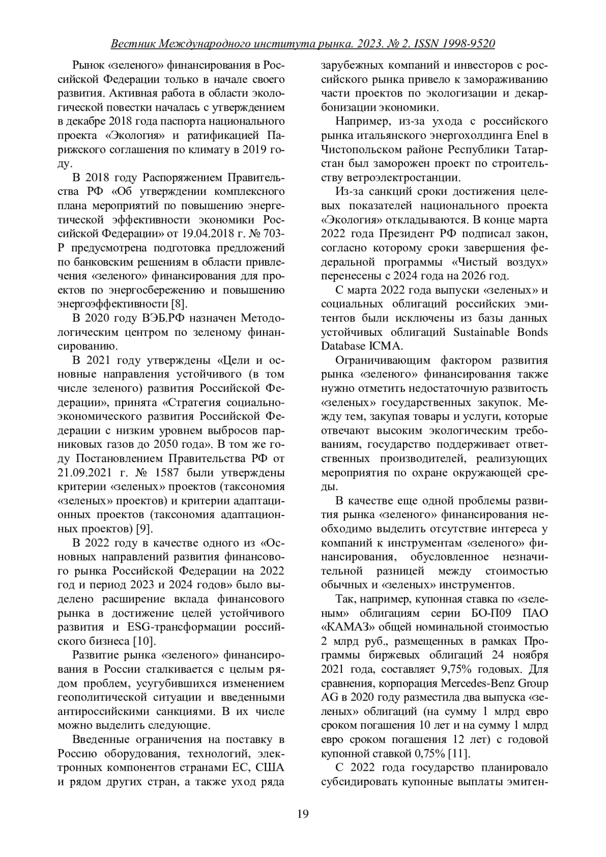 6. Рынок ESG-облигаций: в ожидании стимулов. Аналитическое кредитное рейтинговое агентство АКРА. URL: https://www.acra-ratings.ru/research/2711/.