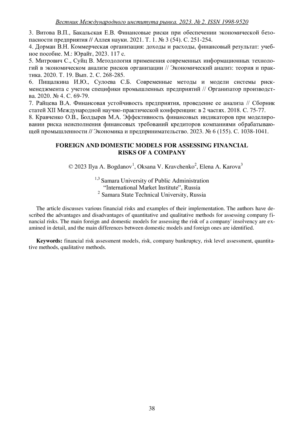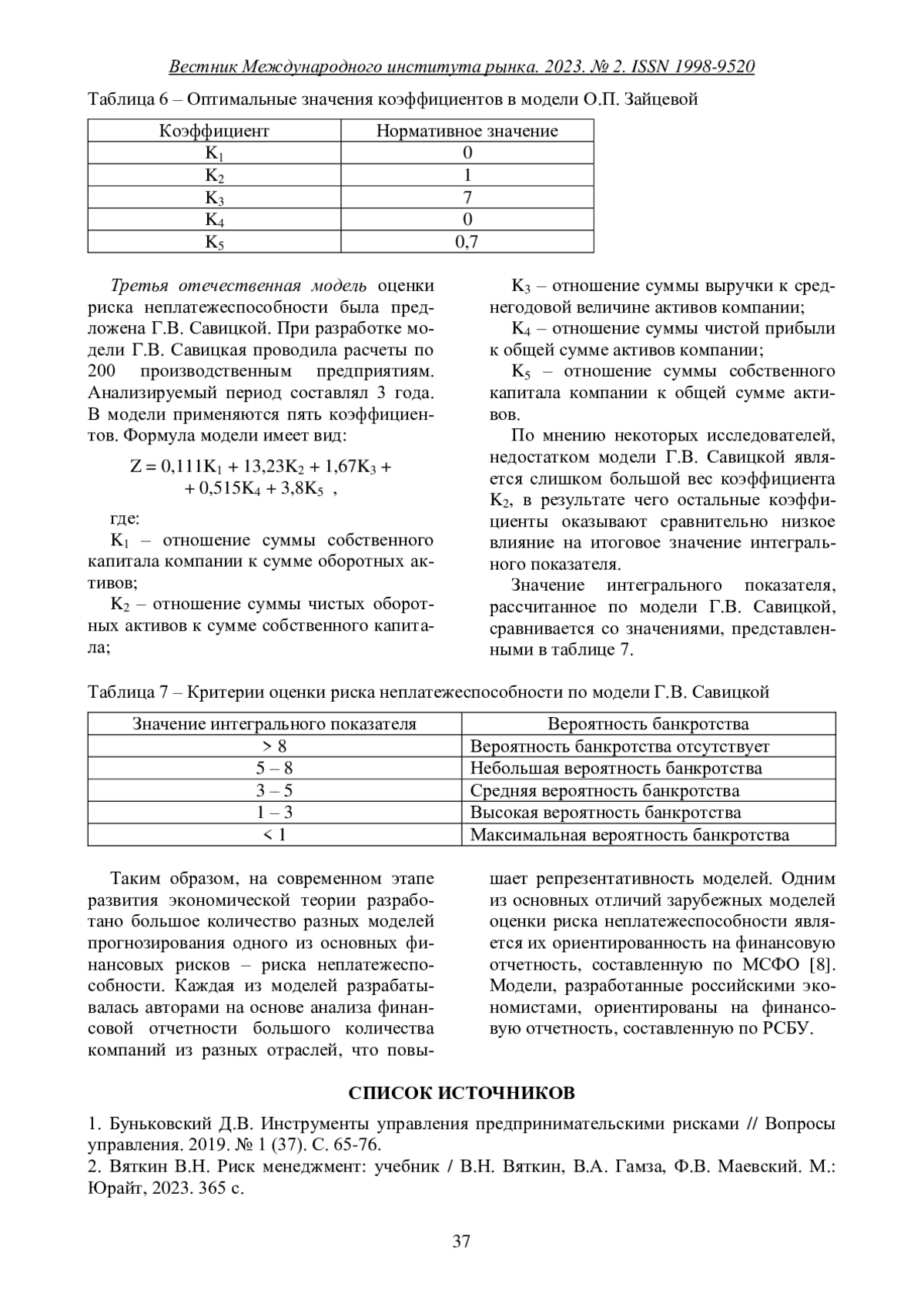 6. Пищалкина И.Ю., Сулоева С.Б. Современные методы и модели системы риск-менеджмента с учетом специфики промышленных предприятий // Организатор производства. 2020. № 4. С. 69-79. EDN: ZQZEDU