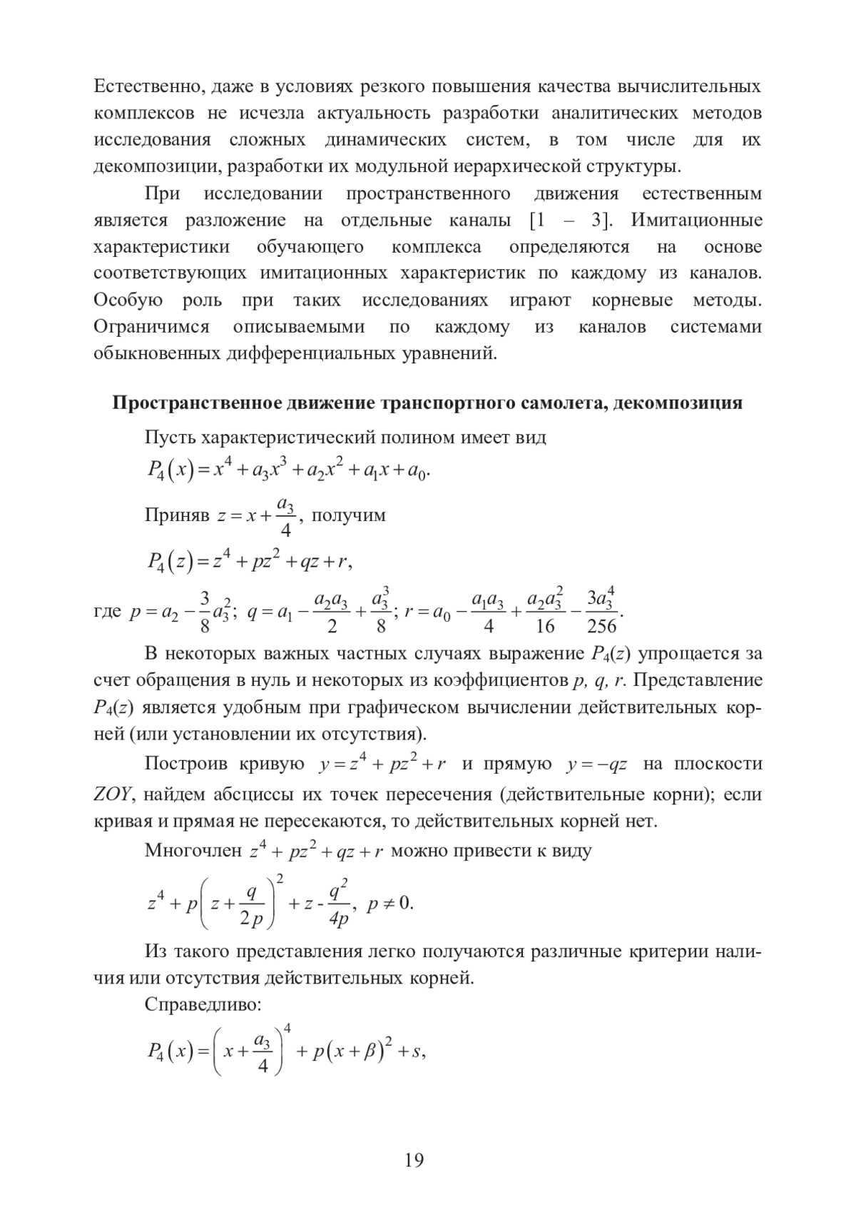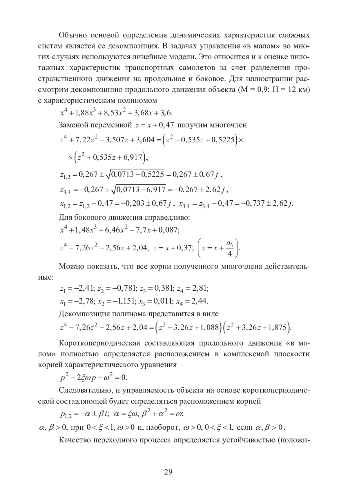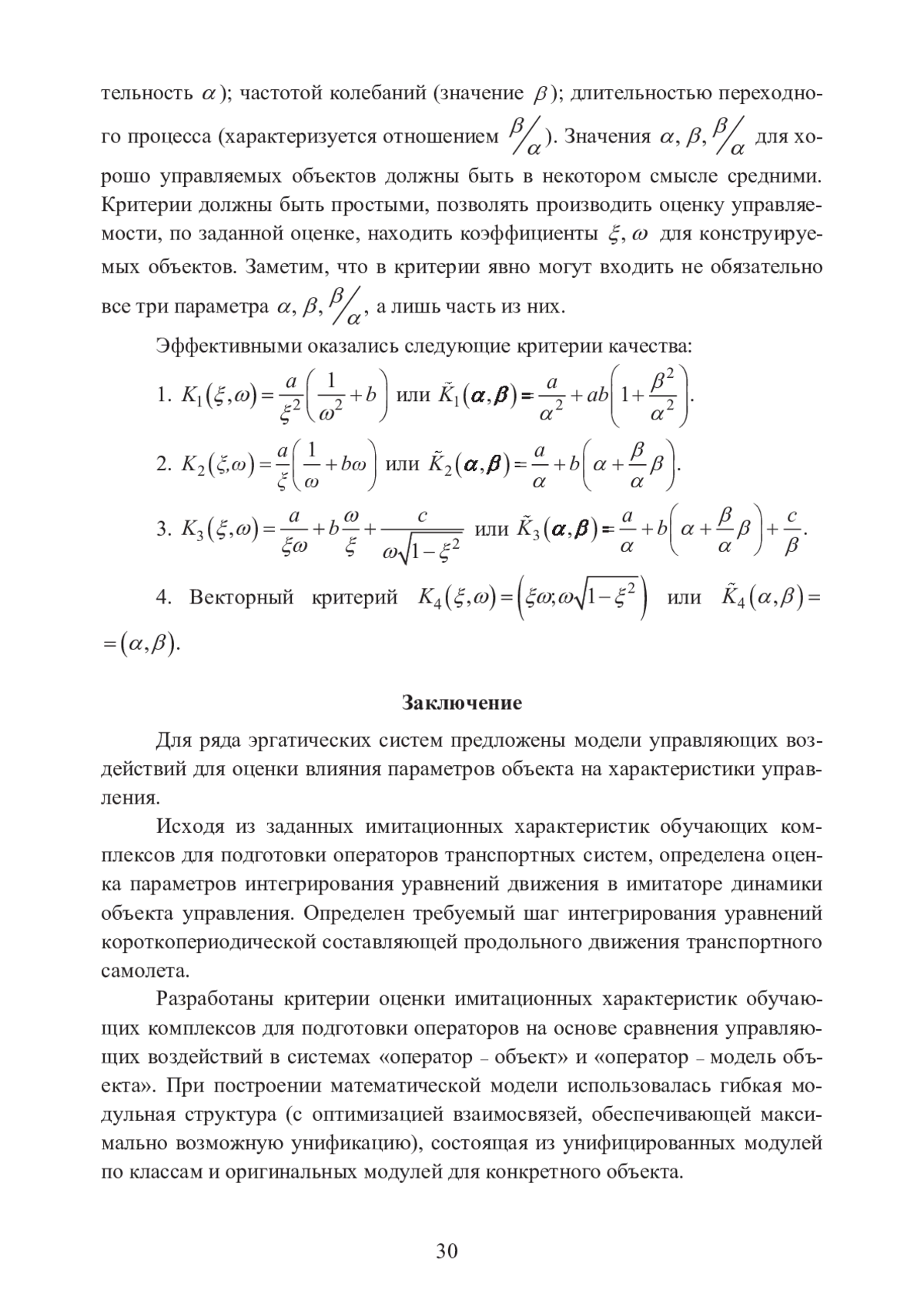 Определяются параметры вычислительного цикла в имитаторе динамики объекта управления при заданных имитационных характеристиках обучающих комплексов для подготовки операторов транспортных систем. Предлагаются критерии оценки оператором динамических характеристик объекта в процессе нормальной эксплуатации целостной системы. Приводятся методы декомпозиции пространственного движения на продольное и боковое по приближенно определяемым корням характеристического полинома четвертого порядка c иллюстрацией на конкретном примере. Для ряда эргатических систем предлагаются модели управляющих воздействий и определяется влияние параметров объекта на характеристики управления.