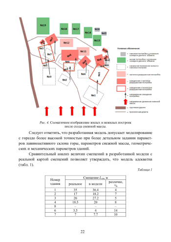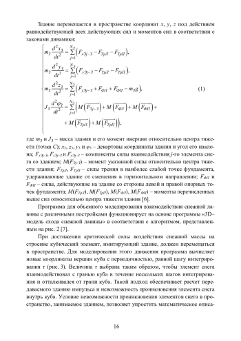 Рассмотрены особенности математического моделирования динамики снежной лавины и ее силового воздействия на здания и сооружения. Разработанная модель учитывает движение снежной массы в трехмерном пространстве. При расчете энергии воздействия снежной лавины учитывали следующий ряд факторов: крутизна склона, толщина снежного покрова и его структура, расположение здания.
