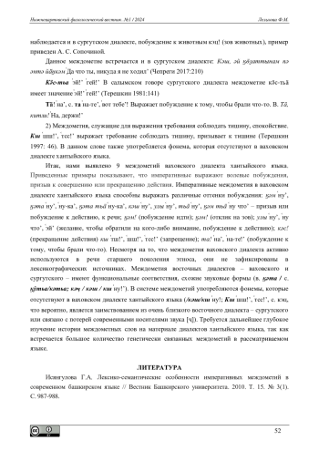 1. Исянгулова Г. А. Лексико-семантические особенности императивных междометий в современном башкирском языке // Вестник Башкирского университета. 2010. Т. 15. № 3(1). С. 987-988. EDN: NDDAVJ