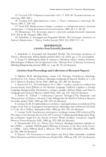 19. Kokoboko A. Estranged and Degraded Worlds: The Grotesque Aesthetics of Tolstoy’s Resurrection // Tolstoy Studies Journal. 2012. Vol. XXIV. P. 1-14.