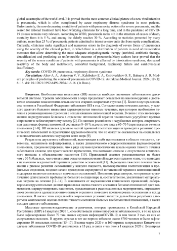 17. Yang X., Yu Y., Xu J. Clinical course and outcomes of critically ill patients with SARS-CoV-2 pneumonia in Wuhan, China: a single-centered, retrospective, observational study // The Lancet Respiratory Medicine. 2020. Vol. 8, no. 5. Р. 475-481. DOI: 10.1016/S2213-2600(20)30079-5 EDN: TXCPLA