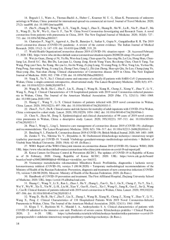 19. Huang C., Wang Y., Li X. Clinical features of patients infected with 2019 novel coronavirus in Wuhan, China // Lancet. 2020. Vol. 395, no. 10223. Р. 497-506. DOI: 10.1016/S0140-6736(20)30183-5 EDN: WLIHXH
