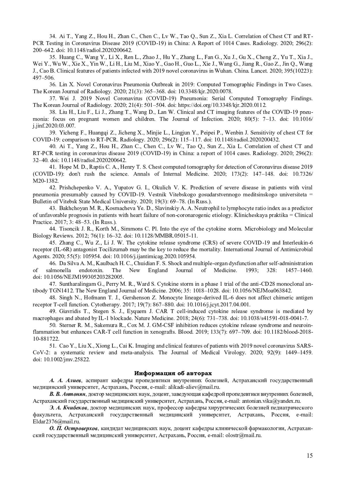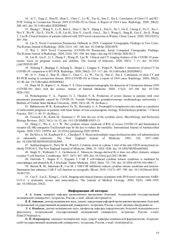 34. Wei J. 2019 Novel Coronavirus (COVID-19) Pneumonia: Serial Computed Tomography Findings // The Korean Journal of Radiology. 2020. Vol. 21, no. 4. Р. 501-504. DOI: 10.3348/kjr.2020.0112 EDN: MDBYHA