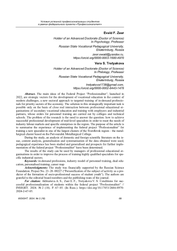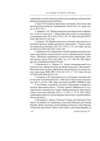 2. Зеер Э. Ф. Теоретико-прикладные основания психологии профессионального развития. Екатеринбург: Изд-во Рос. гос. проф.-пед. ун-та, 2015. 194 с. EDN: WEKCSX