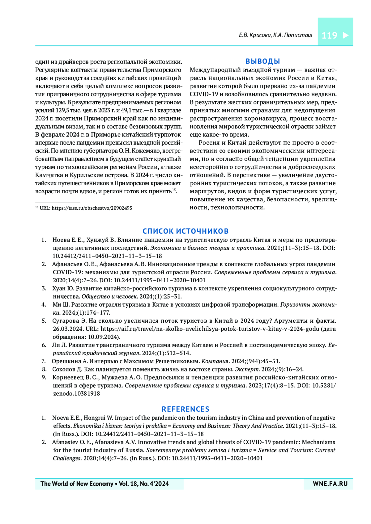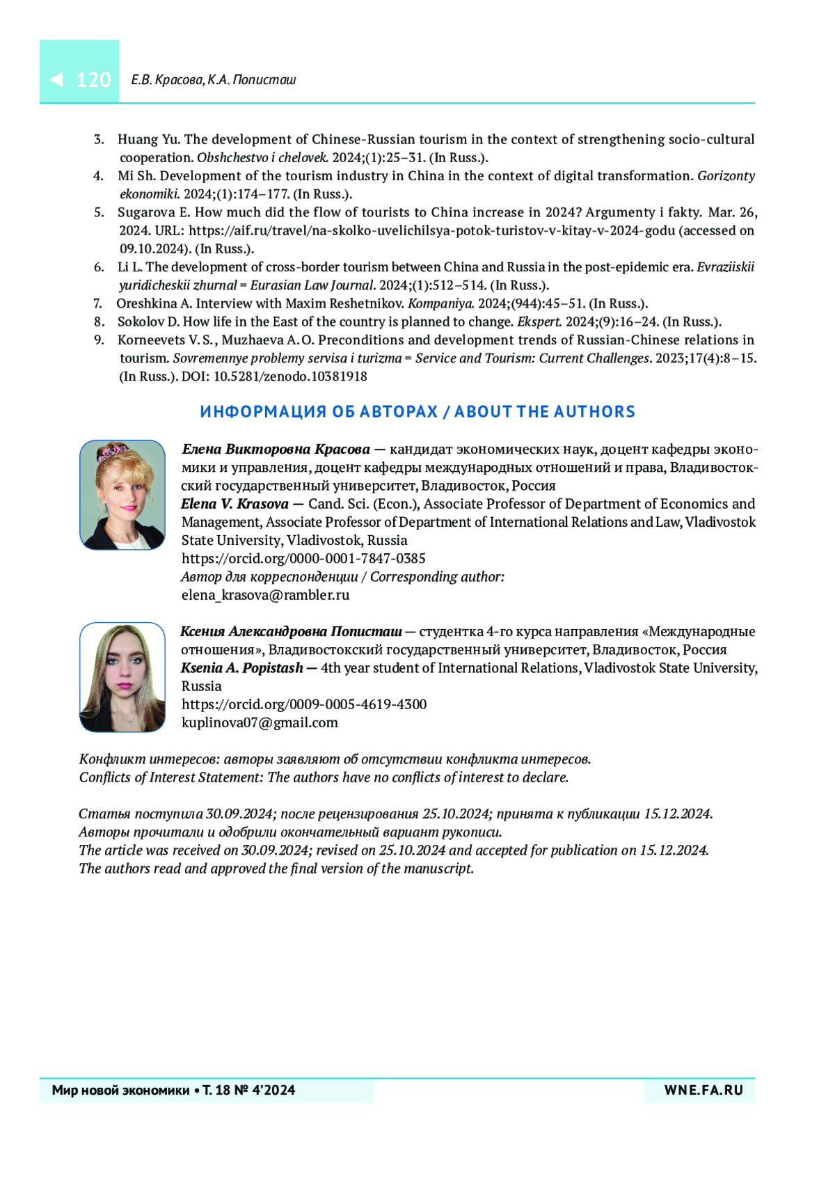 6. Ли Л. Развитие трансграничного туризма между Китаем и Россией в постэпидемическую эпоху. Евразийский юридический журнал. 2024;(1):512-514.