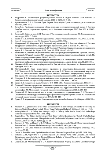 1. Андреева В. Г. Экспликация усадебно-дачного топоса в «Круге чтения» Л. Н. Толстого // Верхневолжский филологический вестник. 2022. № 3 (30). С. 17-27.