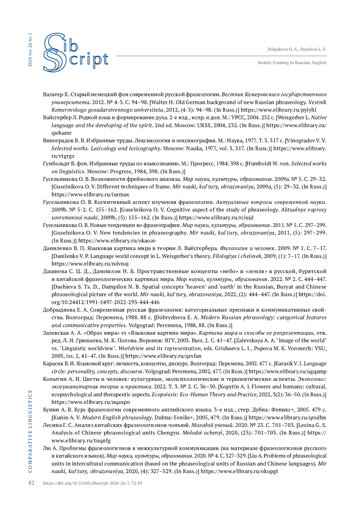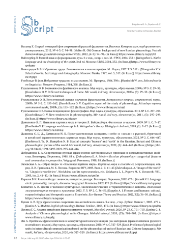 26. Лю А. Проблемы фразеологизмов в межкультурной коммуникации (на материале фразеологизмов русского и китайского языков). Мир науки, культуры, образования. 2020. № 4. С. 327-329. EDN: OKOPGT
