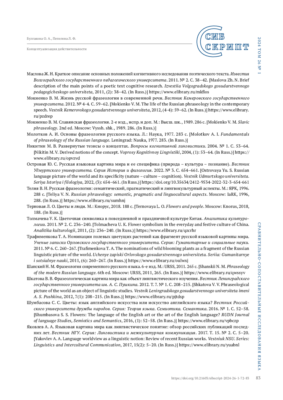 38. Шкатова В. В. Фразеологическая картина мира как объект лингвистического изучения. Вестник Ленинградского государственного университета им. А. С. Пушкина. 2012. Т. 7. № 1. С. 208-215. EDN: PJTDSP