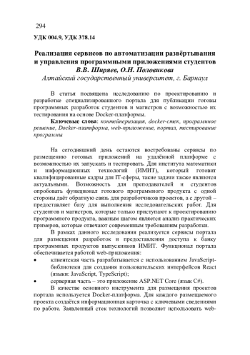 В статья посвящена исследованию по проектированию и разработке специализированного портала для публикации готовы программных разработок студентов и магистров с возможностью их тестирования на основе Docker-платформы.