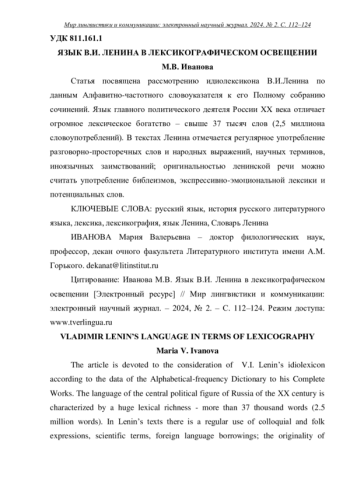 12. Лилеева Е.Л. О некоторых особенностях лексики языка В.И.Ленина / Проблемы лексикографического анализа языка произведений В.И.Ленина. - М.: Наука, 1984. - С. 65-105.