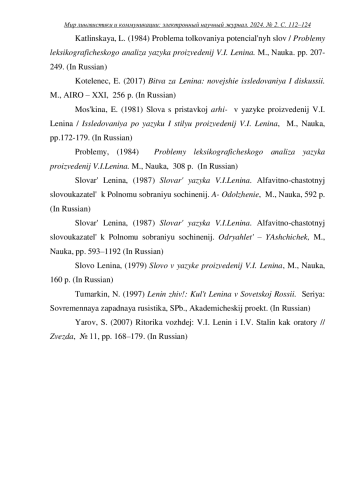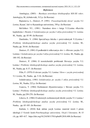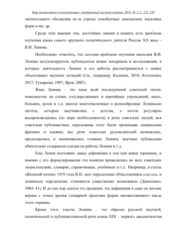 9. Калинин И. А. Как сделан язык Ленина: материал истории и прием идеологии // Вестник Санкт-Петербургского университета. Язык и литература. - 2018, 15 (4) - С. 605-617. DOI: 10.21638/11701/spbu09.2018.408