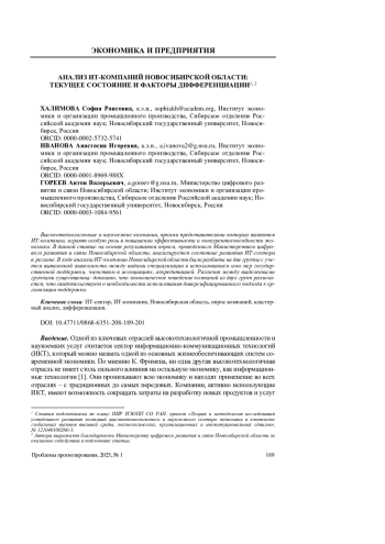Статья: АНАЛИЗ ИТ-КОМПАНИЙ НОВОСИБИРСКОЙ ОБЛАСТИ: ТЕКУЩЕЕ СОСТОЯНИЕ И ФАКТОРЫ ДИФФЕРЕНЦИАЦИИ1, 2 (2025)
