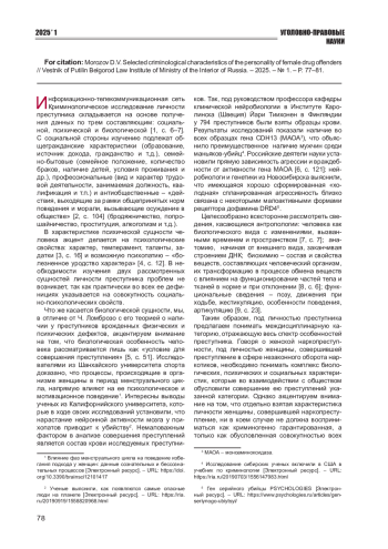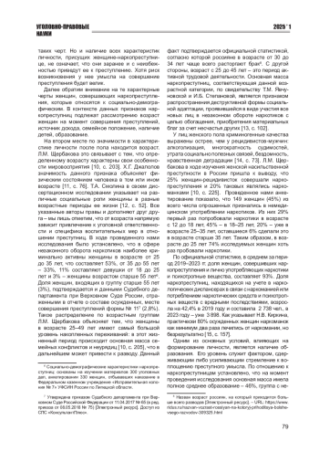 13. Явчуновская Т.М., Степанова И.Б. Социальная характеристика женской наркопреступности // Социологические исследования. - 2008. - № 2 (286). - С. 102-106. EDN: IPWMIJ