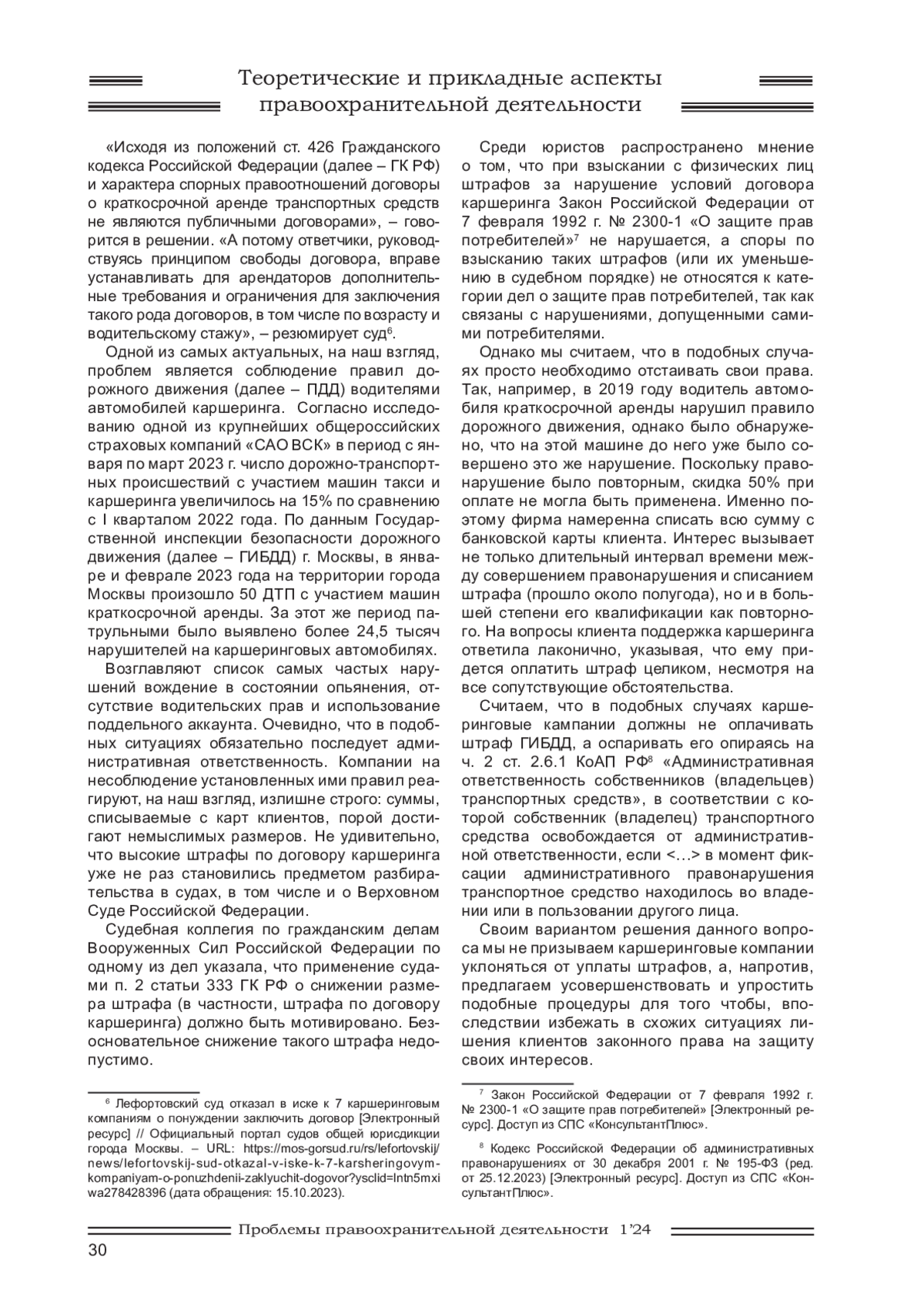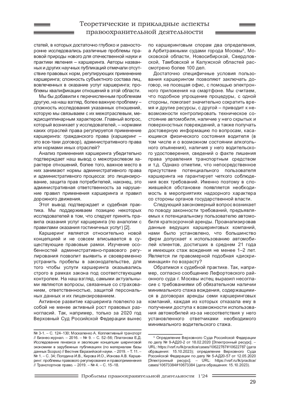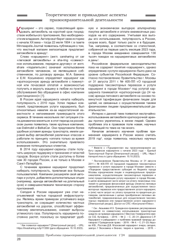 11. Григорьев М.Ю. Правовые проблемы краткосрочной аренды транспортных средств без экипажа (каршеринг) в России / Юридический факт. Выпуск 126. - Кемерово, 2021. С. 49-55. EDN: ENOHUS