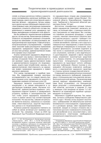 12. Былинин И.А. К вопросу административно-правового регулирования каршеринга и применения федерального государственного надзора в области обеспечения безопасности дорожного движения к его участникам // NB: Административное право и практика администрирования. - 2020. - № 3. - С. 17-27. EDN: TUNIEI
