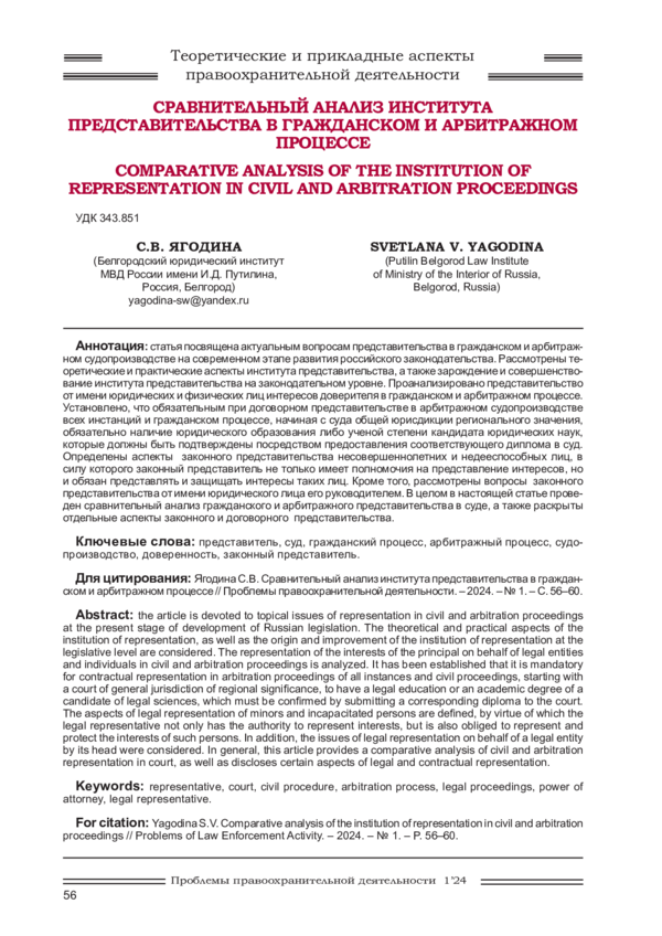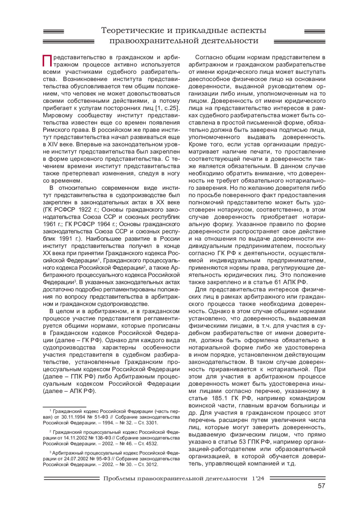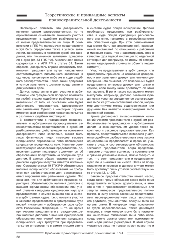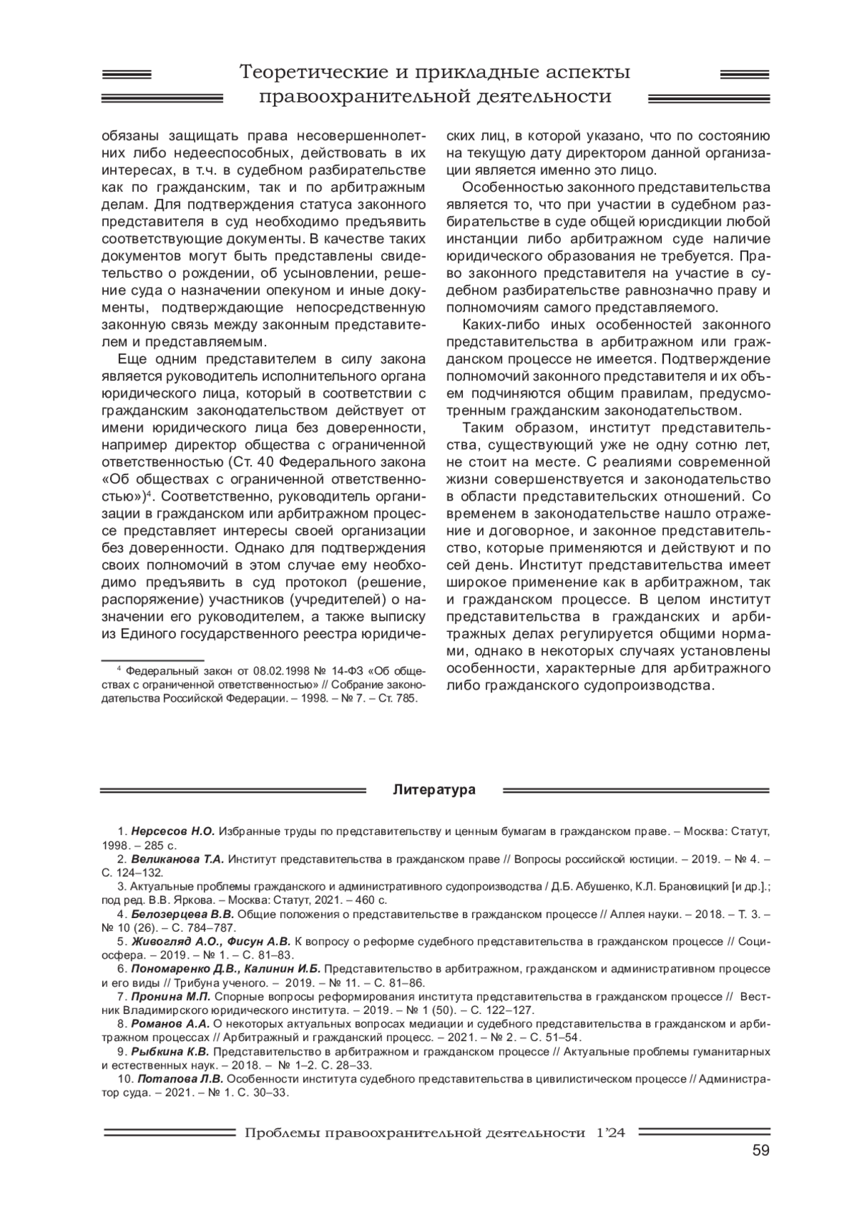 9. Рыбкина К.В. Представительство в арбитражном и гражданском процессе // Актуальные проблемы гуманитарных и естественных наук. - 2018. - № 1-2. С. 28-33. EDN: YNGZFX