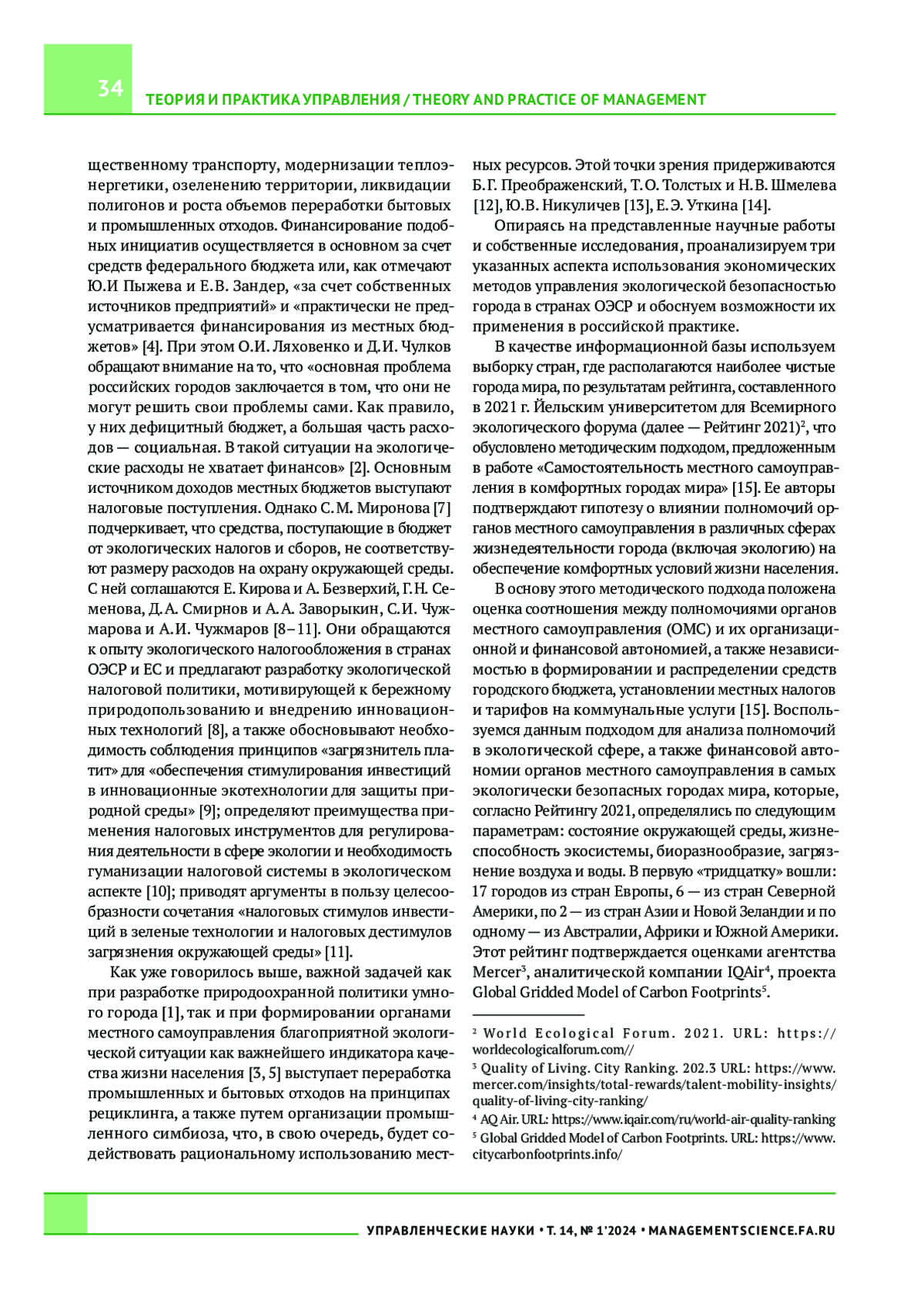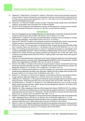4. Пыжева Ю.И., Зандер Е.В. Экономические аспекты решения экологических проблем российских городов. Экономика. Налоги. Право. 2019;12(5):111-120. https://doi.org/10.26794/1999-849X2019-12-5-111-120