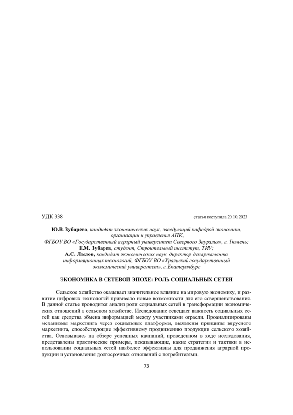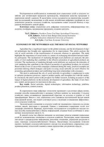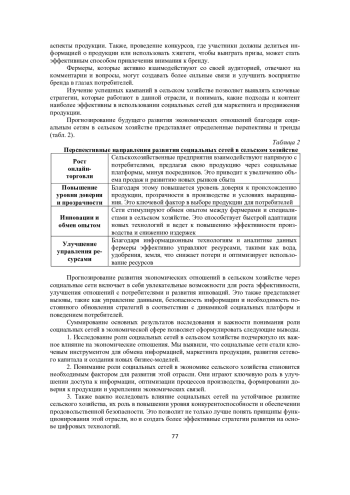 Сельское хозяйство оказывает значительное влияние на мировую экономику, и развитие цифровых технологий привнесло новые возможности для его совершенствования. В данной статье проводится анализ роли социальных сетей в трансформации экономических отношений в сельском хозяйстве. Исследование освещает важность социальных сетей как средства обмена информацией между участниками отрасли. Проанализированы механизмы маркетинга через социальные платформы, выявлены принципы вирусного маркетинга, способствующие эффективному продвижению продукции сельского хозяйства. Основываясь на обзоре успешных кампаний, проведенном в ходе исследования, представлены практические примеры, показывающие, какие стратегии и тактики в использовании социальных сетей наиболее эффективны для продвижения аграрной продукции и установления долгосрочных отношений с потребителями. Подчеркивается необходимость понимания роли социальных сетей в сельском хозяйстве для оптимизации процессов производства, повышения качества продукции и укрепления связей с рынком. В заключение статьи указывается на перспективы дальнейших исследований, включающих в себя анализ воздействия цифровых платформ на экономическое развитие сельского хозяйства, исследование новых моделей бизнеса и перспектив инноваций в данной сфере.