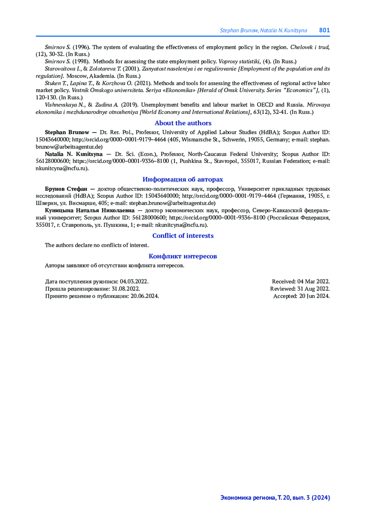 23. Smirnov S. (1996). The system of evaluating the effectiveness of employment policy in the region. Chelovek i trud, (12), 30-32. (In Russ.).