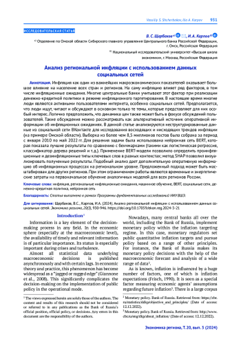 34. Semiturkin, O., & Shevelev, A. (2022). Forecasting Regional Inflation Rates Using Machine Learning Methods: The Case of Siberia Macroregion. The Bank of Russia Working Paper Series No. 91, 16. https://cbr.ru/StaticHtml/File/134578/ wp_91.pdf.