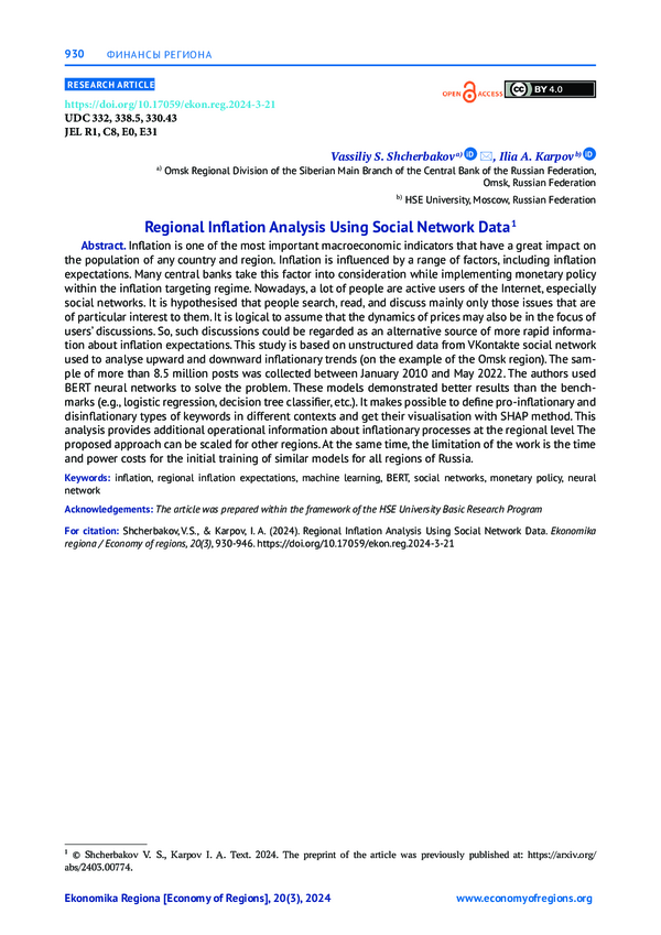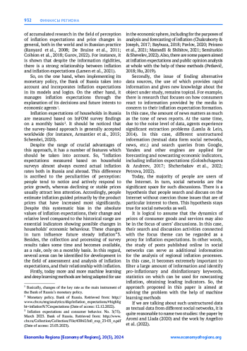 30. Petrova, D. (2022). Assessment of inflation expectations based on internet data. Prikladnaya ekonometrika [Applied econometrics], 66, 25-38. (In Russ.).