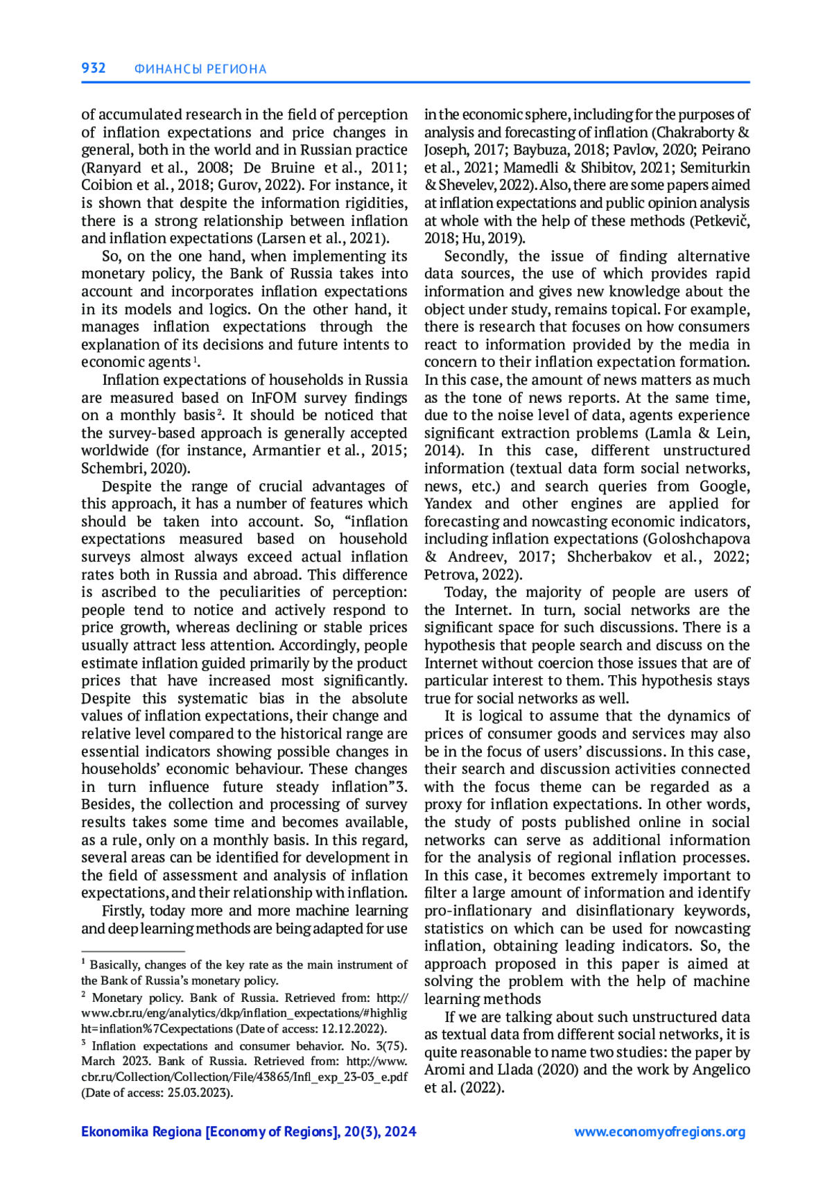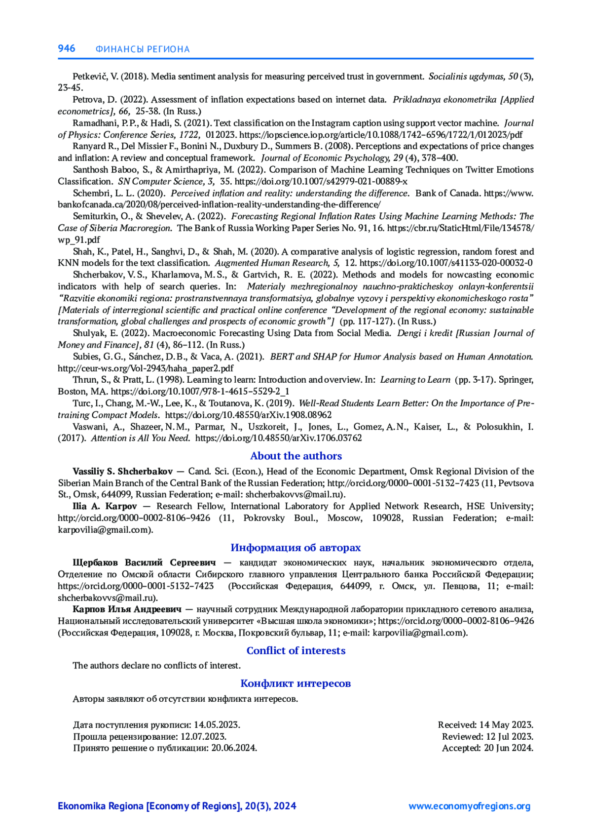 15. Goloshchapova, I., & Andreev, M. (2017). Measuring inflation expectations of the Russian population with the help of machine learning. Voprosy ekonomiki, (6), 71-93. (In Russ.).