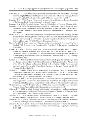18. Березович Е. Л. О неявных маркерах старообрядчества в ономастике Карельского Поморья // Вопросы ономастики. 2024. Т. 21, № 2. С. 210-230. DOI: 10.15826/vopr_onom.2024.21.2.023 EDN: PLJSFA