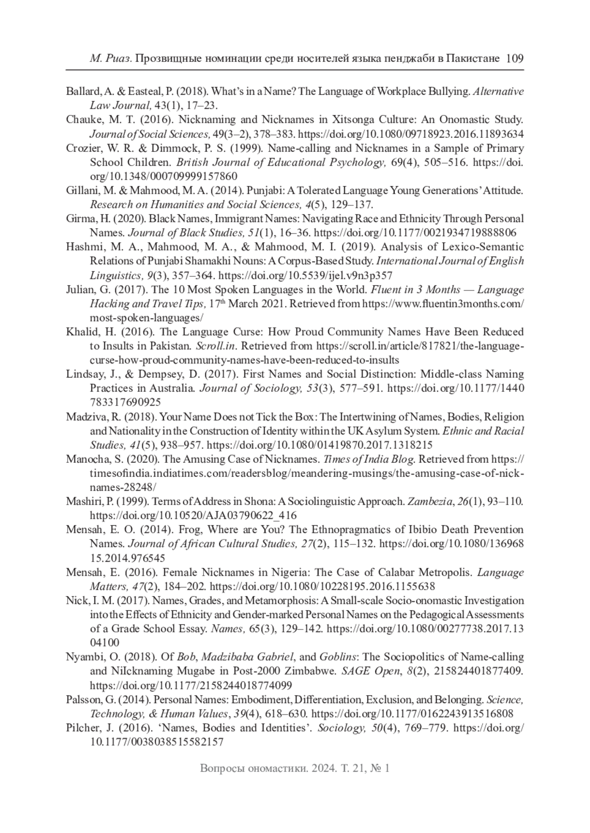 16. Mensah E. (2016). Female Nicknames in Nigeria: The Case of Calabar Metropolis. Language Matters, 47(2), 184-202. DOI: 10.1080/10228195.2016.1155638