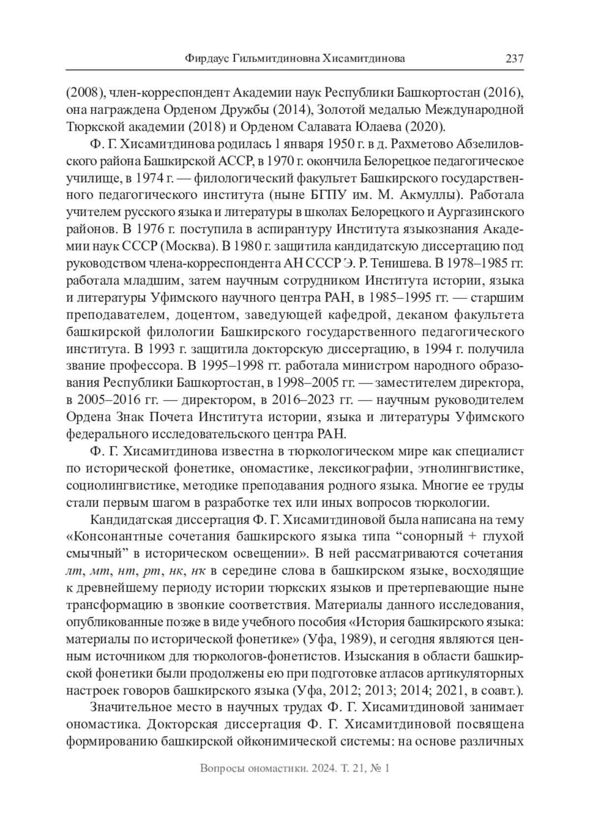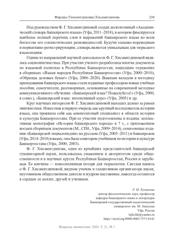 3 октября 2023 г. ушла из жизни доктор филологических наук, профессор Фирдаус Гильмитдиновна Хисамитдинова — ученый-тюрколог, педагог, специалист в области башкирского языкознания, ономатолог, общественный и государственный деятель.