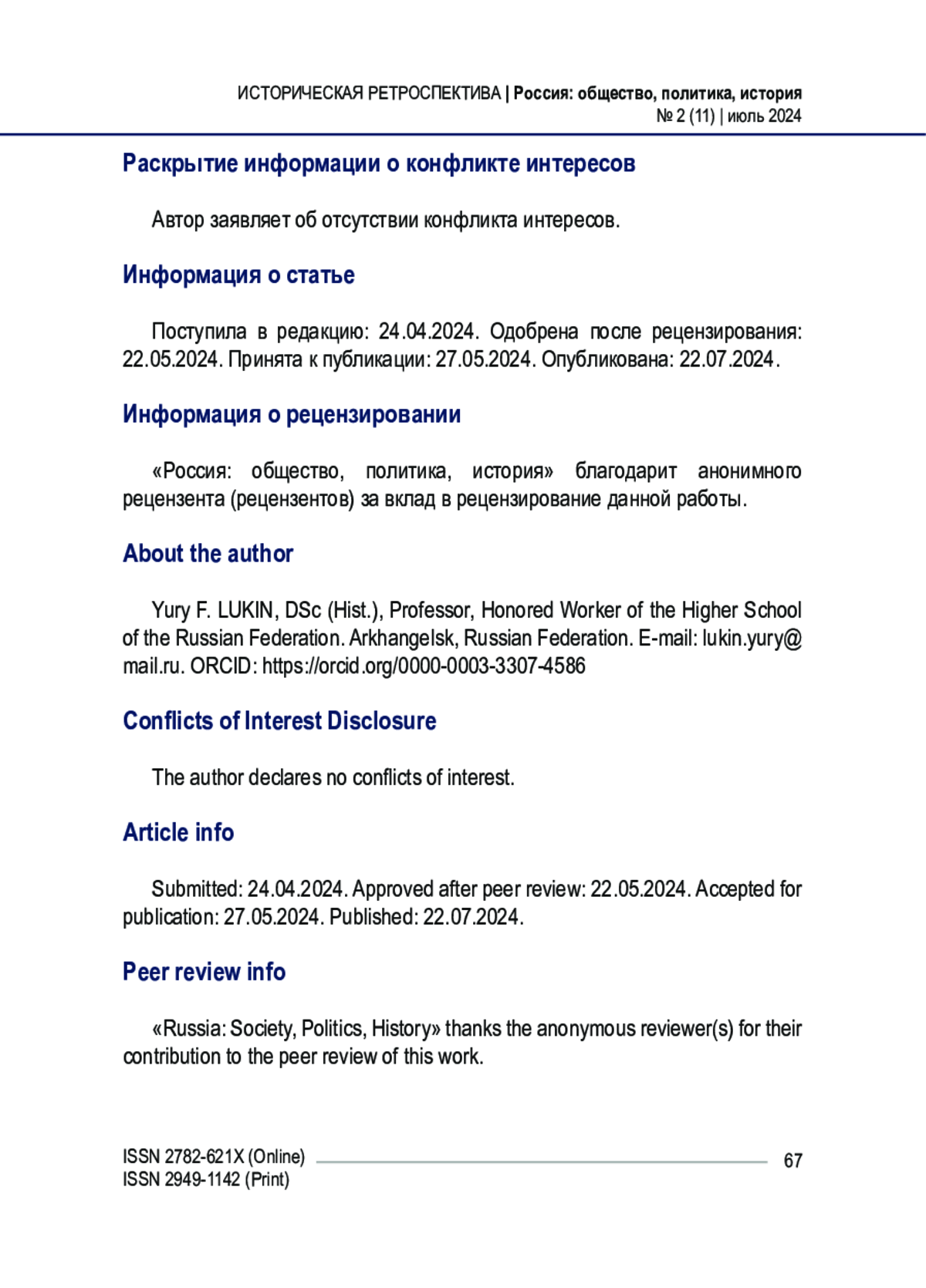 Статья представляет собой вступительное слово главного редактора журнала “Россия: общество, политика, история” Комлевой Валентины Вячеславовны