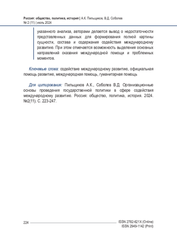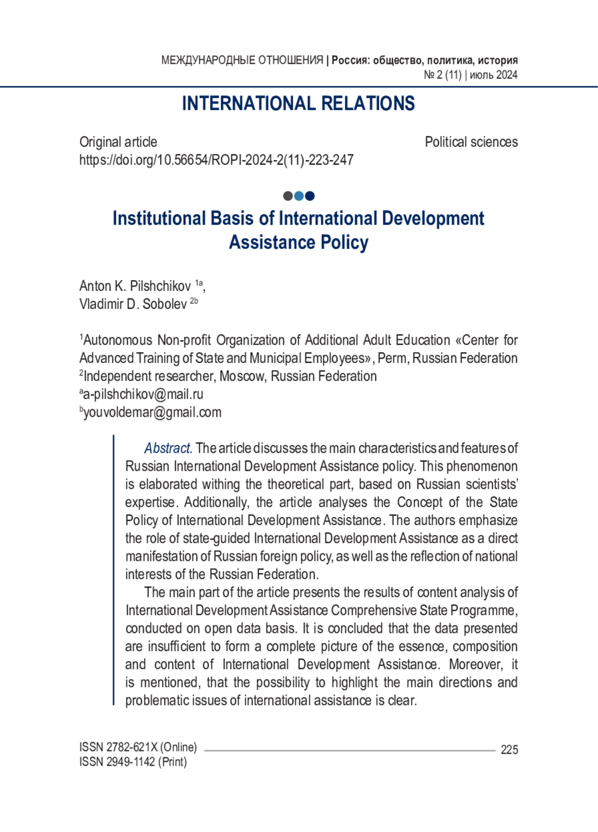 11. Зайцев Ю.К. (2020), Новые вызовы для российской внешней помощи в контексте достижения целей устойчивого развития [New Challenges for Russiaʼs Foreign Aid and its Contribution to the Sustainable Development Goals]. Вестник международных организаций: образование, наука, новая экономика. Т. 15. № 1. С. 63-83.