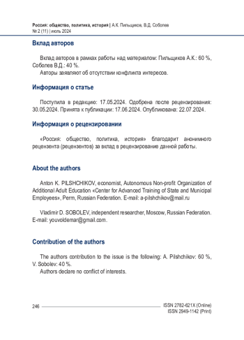 Статья представляет собой вступительное слово главного редактора журнала “Россия: общество, политика, история” Комлевой Валентины Вячеславовны