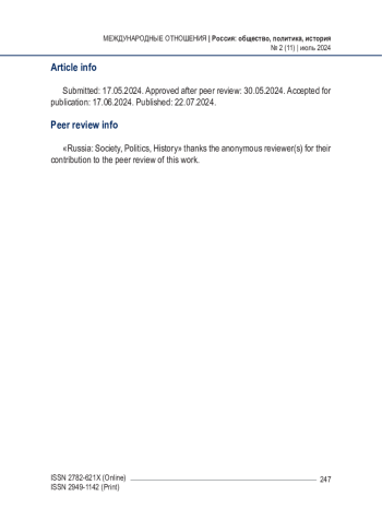 20. Смирнова А.С. (2023), Международное сотрудничество Перу для обеспечения гуманитарной безопасности и место России в нём [Peru’s International Cooperation to Ensure Human Security and Russia’s Place in It]. Известия Иркутского государственного университета. Серия: «Политология. Религиоведение». Т. 46. С. 38-54.