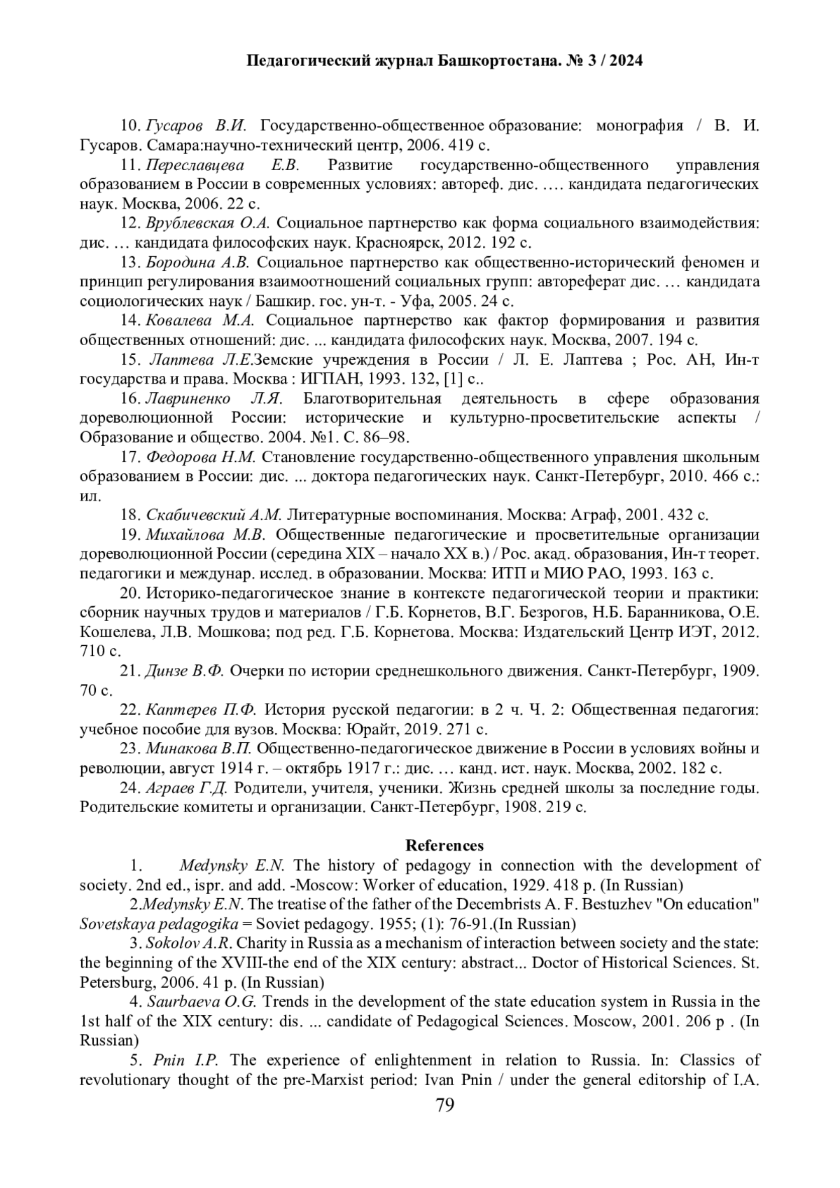 16. Лавриненко Л.Я. Благотворительная деятельность в сфере образования дореволюционной России: исторические и культурно-просветительские аспекты / Образование и общество. 2004. №1. С. 86–98.