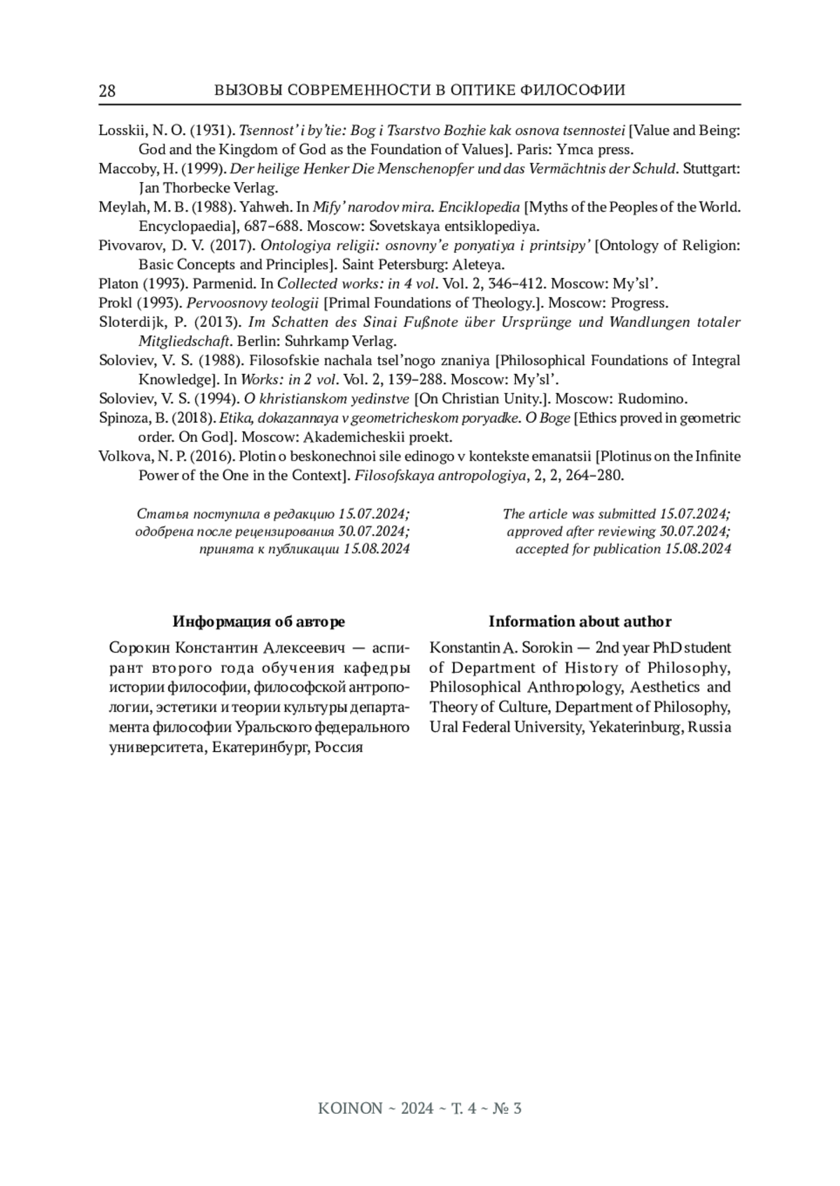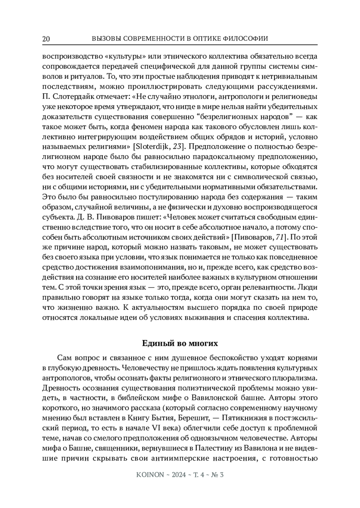 Представляя третий номер журнала «Koinon» за 2024 год необходимо рассказать о творческой коллаборации с оргкомитетом «Пивоваровских чтений», во многом определившей его содержание. Феномен человеческой совместности, при всей его кажущейся растворенности в витальных, психических, социальных процессах имеет четко различимые виды / способы существования.