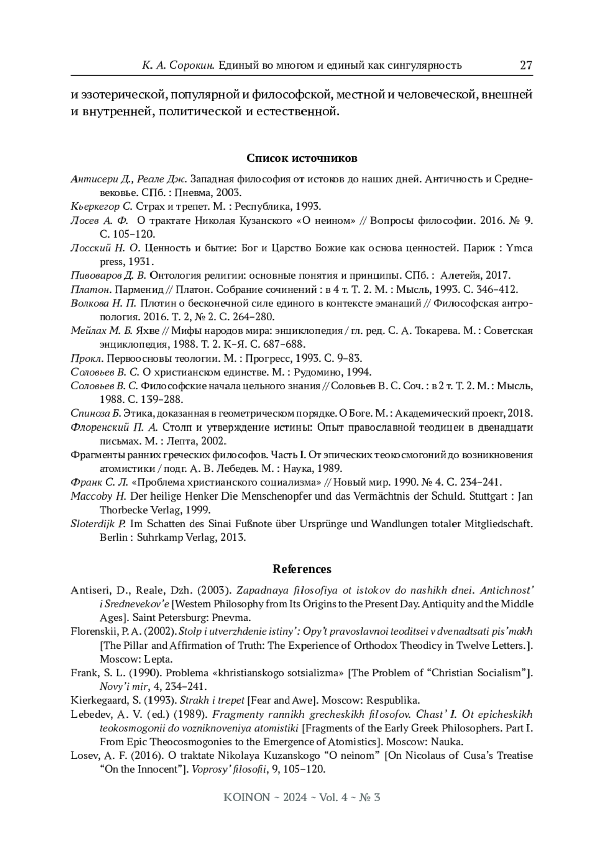 3. Лосев А. Ф. О трактате Николая Кузанского “О неином” // Вопросы философии. 2016. № 9. С. 105-120. EDN: WMJGRX