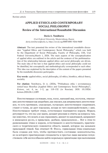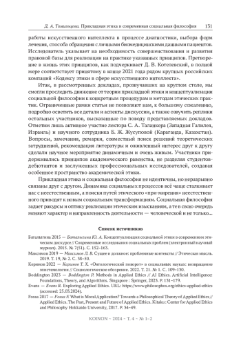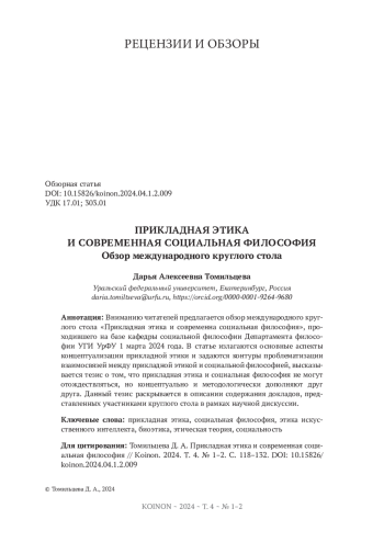 ТОМИЛЬЦЕВА Д. А. ПРИКЛАДНАЯ ЭТИКА И СОВРЕМЕННАЯ СОЦИАЛЬНАЯ ФИЛОСОФИЯ // KOINON. 2024. Т. 4 № 1-2
