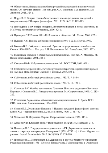 60. Цинцадзе Н.С. Феномен Г.Р. Державина в государственно-политической жизни России последней трети XVIII - начала XIX в. // Вестник Тамбовского университета. Серия: Гуманитарные науки. 2014. № 4 (132). С. 199-208. EDN: TIJTAJ